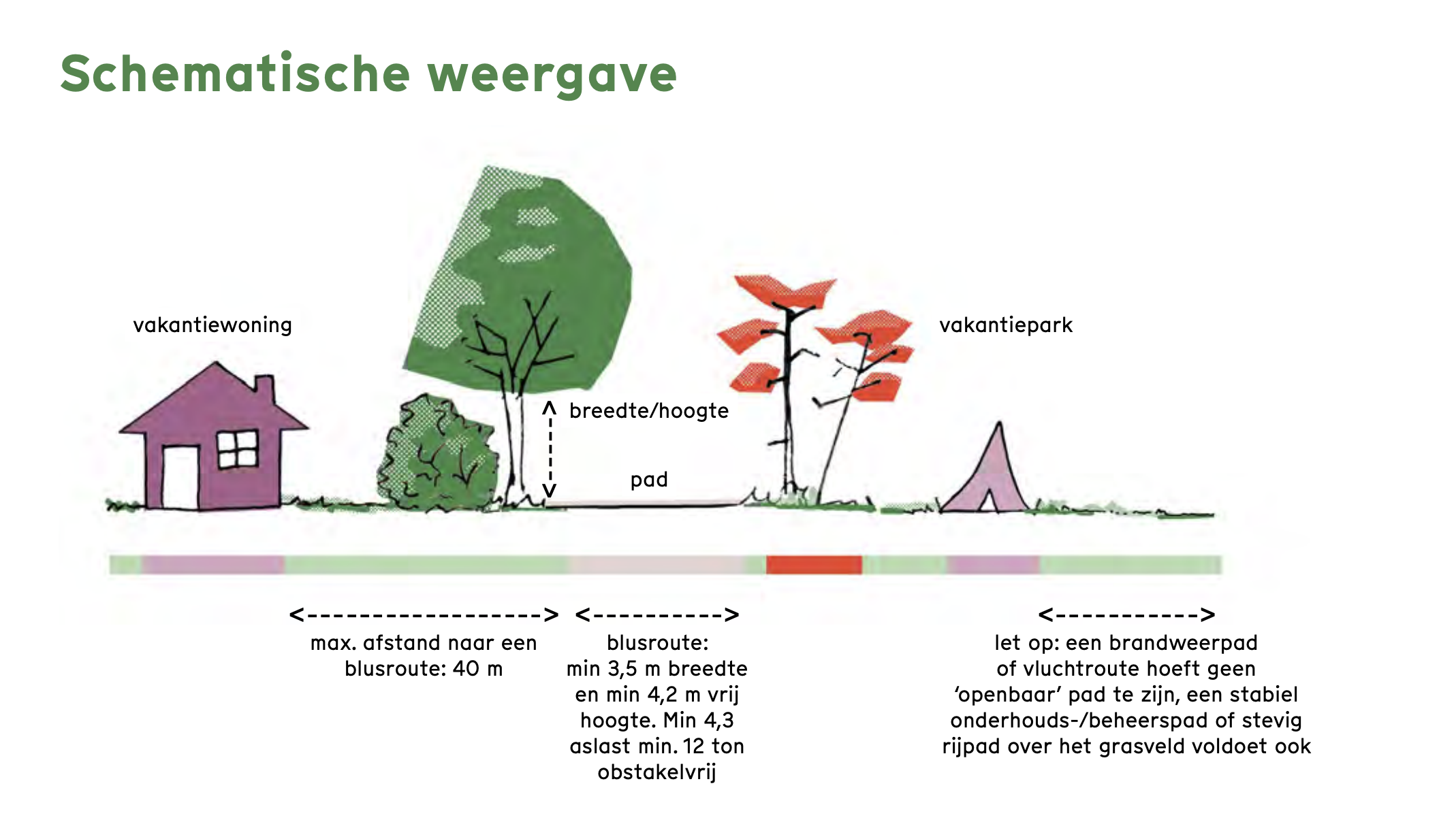 Een voorbeeld waarin brandveiligheid, biodiversiteit én beleving goed samen gaat, is het principe van ‘compartimenteren’. In dit inrichtingsprincipe wordt het vakantiepark opgedeeld in verschillende gebiedjes. Tussen deze zogenaamde compartimenten liggen open zones en minder brandbare beplanting. Bij het ontstaan van een brand kan deze minder makkelijk overslaan van het ene naar het andere compartiment. Tegelijkertijd krijgt de recreant een afwisselend en groen park waar ruimte is voor verschillende leefomgeving voor planten en dieren.