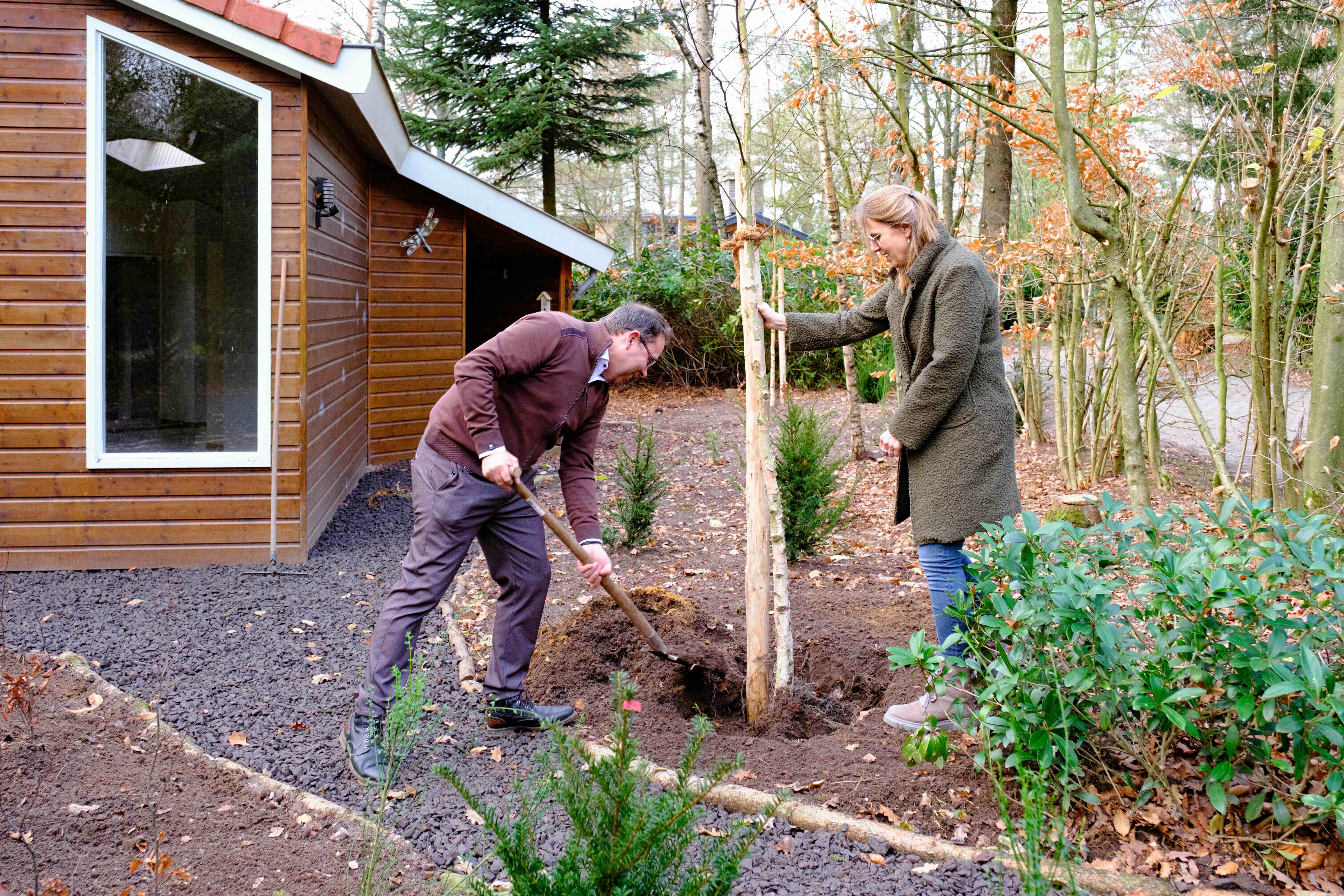 Wethouder Tigchelaar plantte op 10 december samen met één van de eigenaren van bungalowpark De Toverberg een jonge boom. Om zodoende symbolisch de Veluwse Plantdagen te starten. Dit organiseert Vitale Vakantieparken nu voor het tweede jaar.