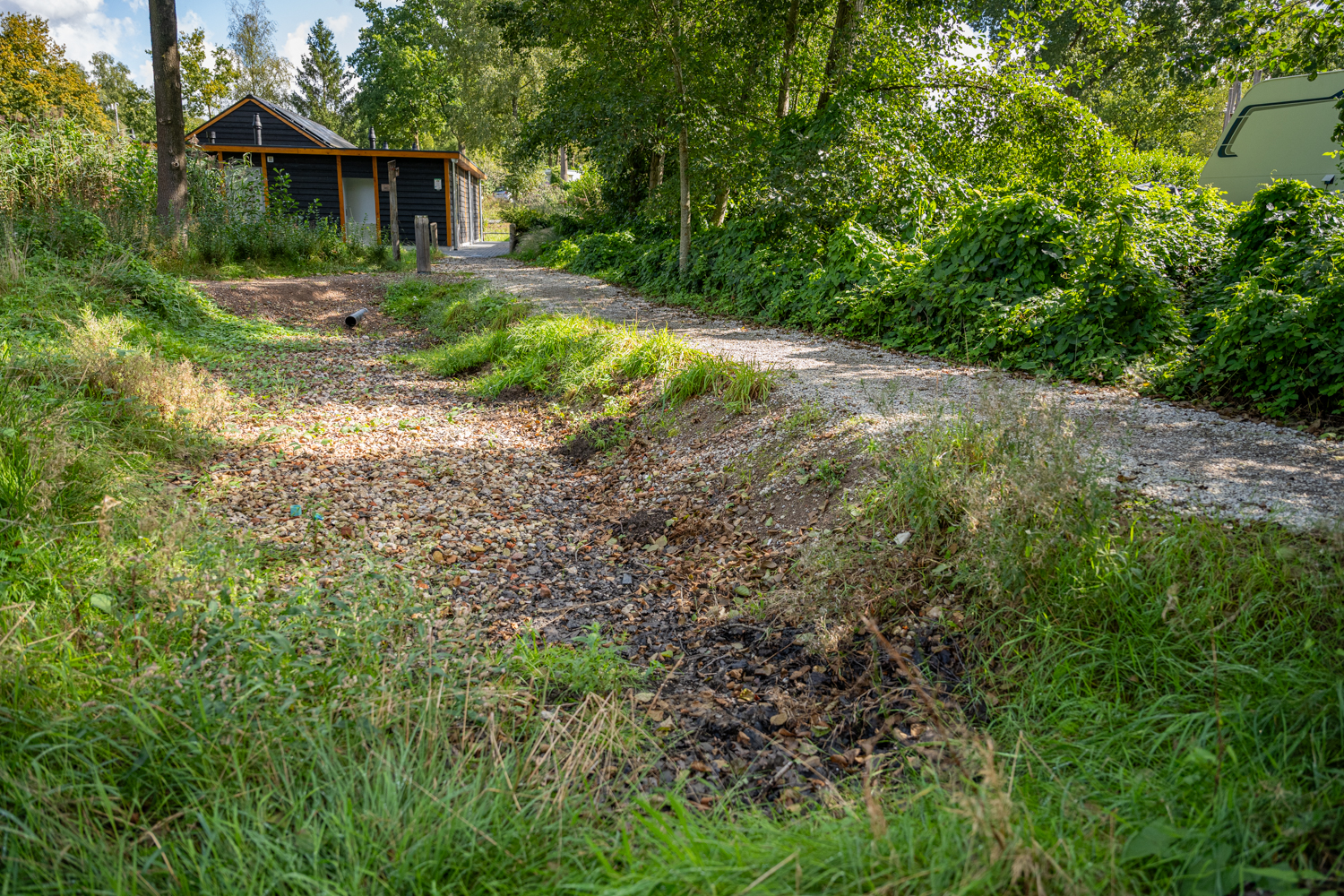 Langs het vonkelnieuwe Piet Paulusmapad ligt een wadi waarin het hemelwater van het dak van het nabij gelegen sanitair gebouw in wordt afgevoerd. Zo kan het gemakkelijk de grond intrekken. Beets: ‘En als het heel nat is, dan staat het vol en zwemmen er zelfs eenden in’. Naast de wadi is er op de camping ook een kikkervijver te vinden. Bewust omgaan met flora en fauna staat hier hoog in het vaandel.